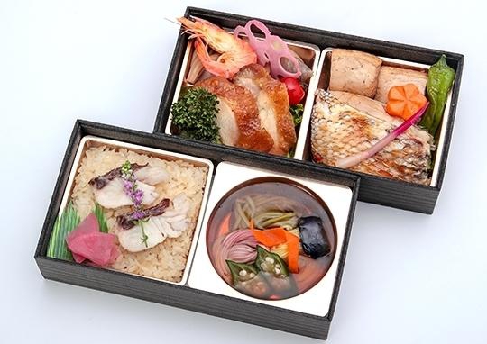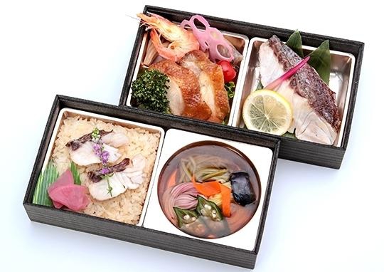 笑福箱 地鶏の照り焼きとお蕎麦の鯛めし御膳